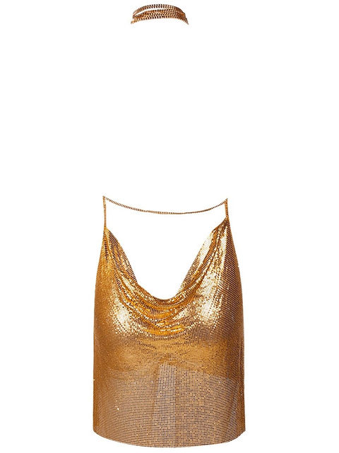 Description: Sexy Chainmaille Party Dress with Deep V Neck Plunge Metal Fabric