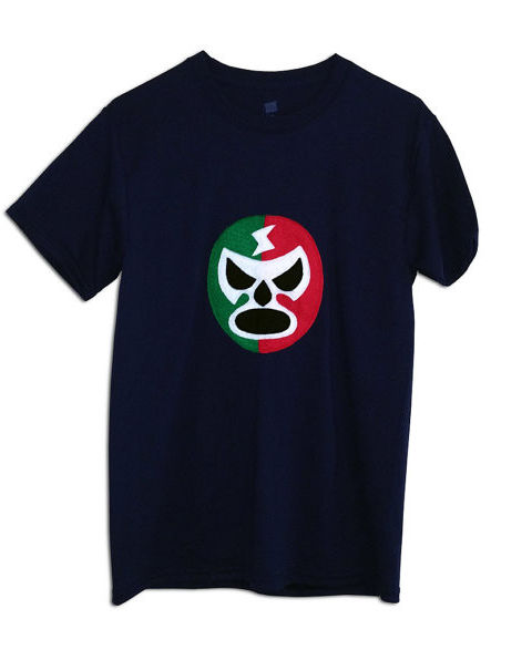 Luchador Rojo + Verde is here to protect you!! This colorful character will be a big hit and you will be a talk of the town! I cut out felt pieces and they are appliqued to the shirt. This t-shirt is made to order. It is handmade; hand-stitched with 100% love by me in Paradise!