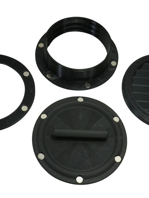 Magnetic omni-directional threaded wall flange mount kit for Ecoflow Wave 2 exhaust tube D. Critical parts are made of strong and heat-resistant PETG plastic.