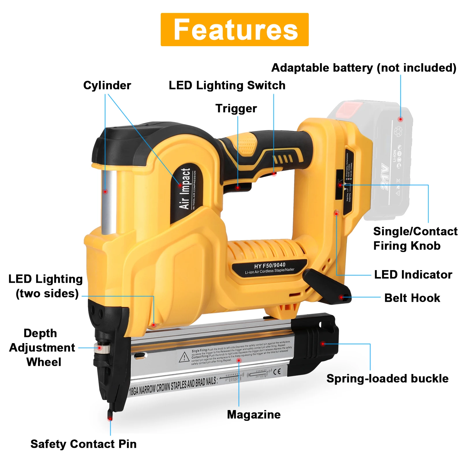 Convenient to carry, supports both straight nails and n-shape nails, improving the flexibility of the use of the machine, and improving work efficiency.